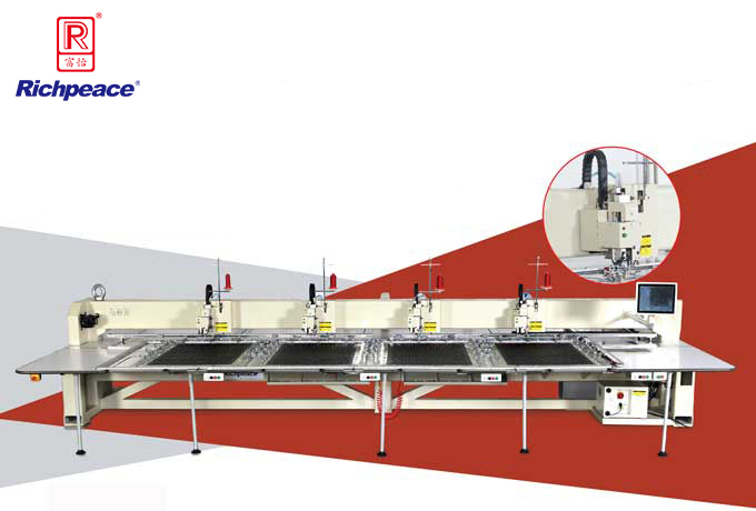 1、富怡全自動(dòng)四頭皮革縫紉機(jī)升降式機(jī)頭,全自動(dòng)電腦程序控制,取代一人一機(jī)人工操作平車的縫紉模式;