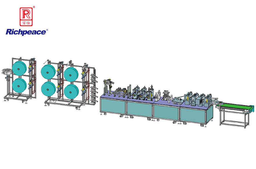 1.口罩一次性焊接成型,面層、濾層、底層3-6卷料自動(dòng)對(duì)齊入料,自動(dòng)嵌入鼻梁條,花型自動(dòng)焊接,自動(dòng)分揀成品和廢料,省人工,高效率。