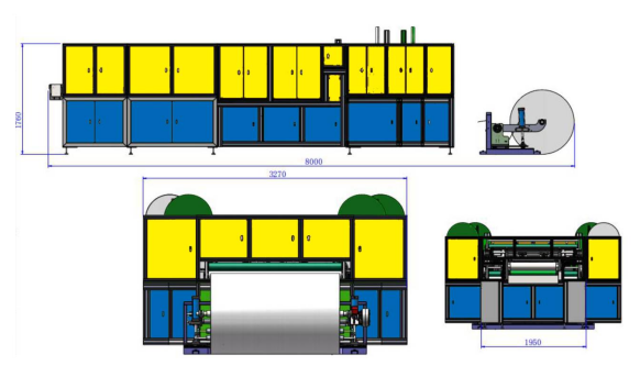 全自動防護服衣身制造機, 從送料到腰帶繩焊接、 領口切割、 折疊、 袖口切割、 肩部焊接、 成型切割均由機器自動完成,無需人工操作。
